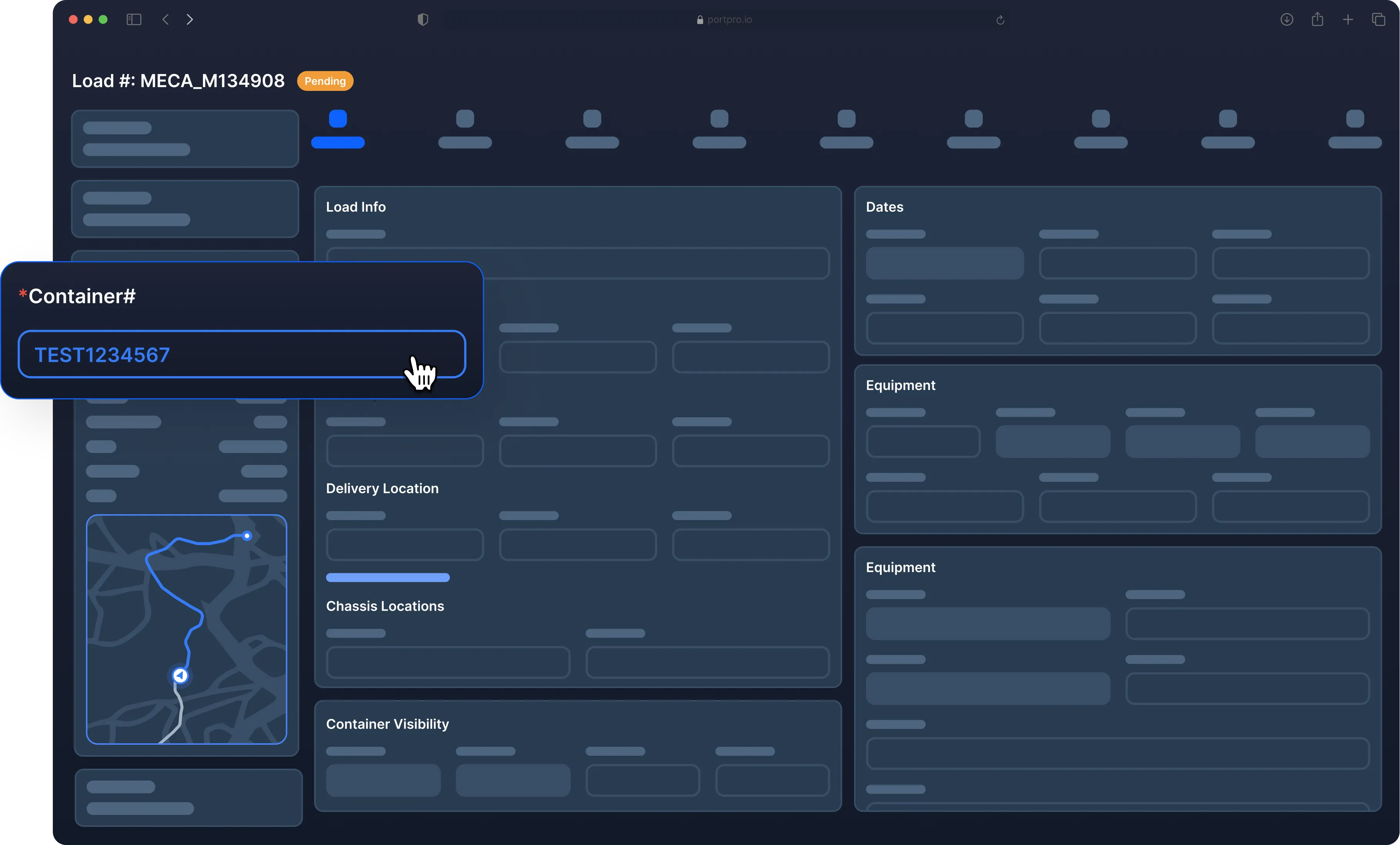 Enter a container number and PortPro automatically pulls in up to 13 different data points from the terminal website.